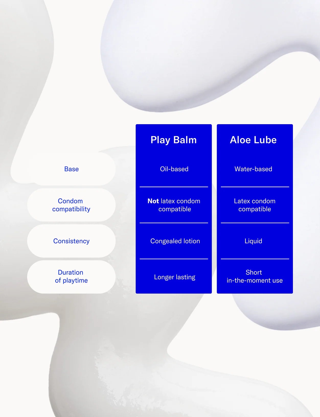 Like all oil-based products, Play Balm is not compatible with latex condoms.