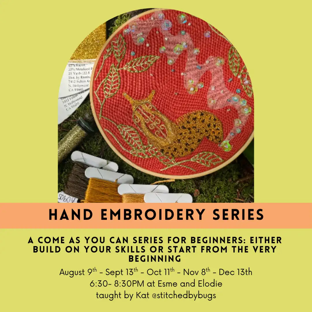DIY hand embroidery class taught by Kat @stitchedbybugs -
